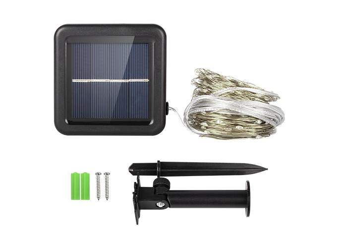 Светодиодный светильник-гирлянда "ДЕКОРАТИВНАЯ НИТЬ" с солнечной батареей. Предназначен для декоративной подсветки кустарников, альпийских горок, террас, веранд на садовых и дачных участках, балконов и т.п. Автоматическое включение/выключение при наступлении темного/светлого времени суток (датчик освещенности). 8 режимов работы: комбинированный, волнообразный, последовательный, перетекающий, бегущая вспышка, затухающий, мерцающий, постоянный. Время непрерывной работы при полностью заряженном аккумуляторе 8 часов. Материал корпуса светодиодной панели и колышка – ABS-пластик, в гирлянде используется медный провод. Светильник можно устанавливать в грунт и на вертикальную поверхность. Крепеж (два самореза и дюбеля) входит в комплект поставки.