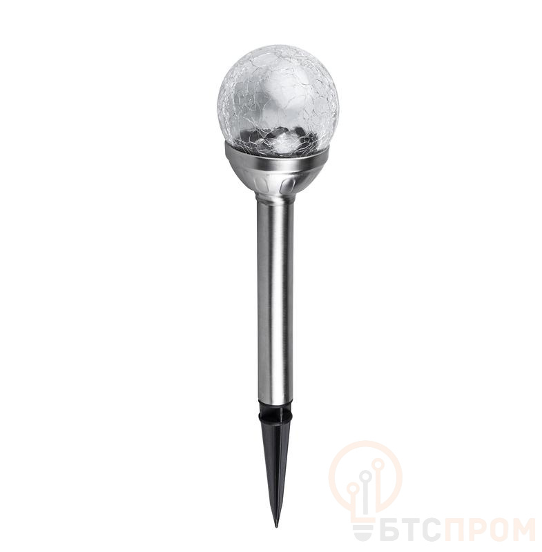 Светодиодный светильник с солнечной батареей, устанавливается в грунт. Предназначен для декоративной подсветки садовых и дачных участков, цветников, дорожек. Автоматическое включение/выключение при наступлении темного/светлого времени суток (датчик освещенности) Цвет свечения: мультицветный (автоматическое изменение цвета) Время непрерывной работы при полностью заряженном аккумуляторе 8 часов. Материал корпуса: нержавеющая сталь, пластик. Плафон отлит по технологии растрескавшегося стекла.