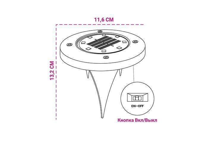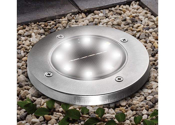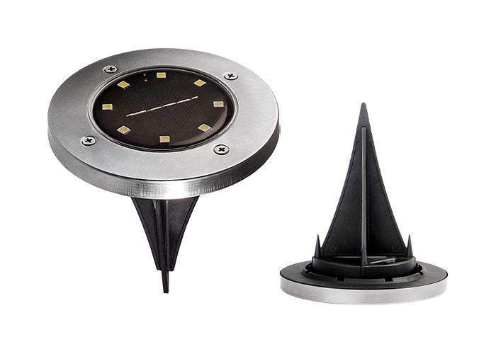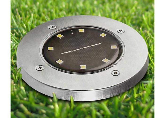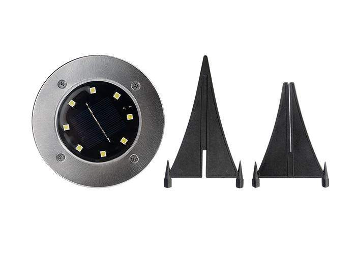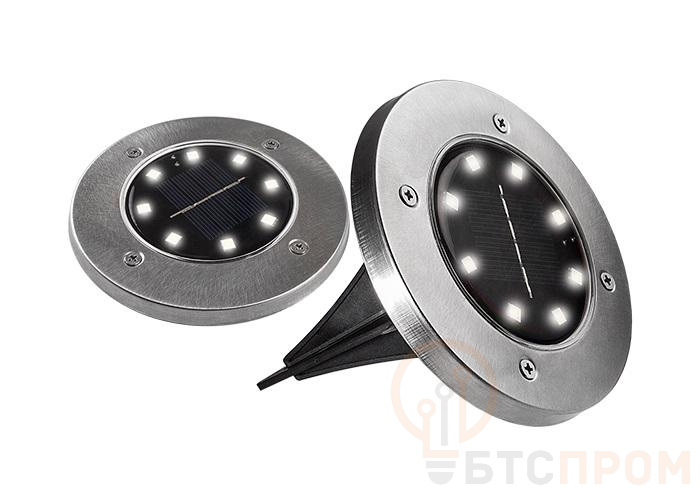 Комплект из 2-х ландшафтных светильников для установки в грунт. 8 стветодиодов, диаметр 11.6 см, IP44. Упаковка - цветная коробка.