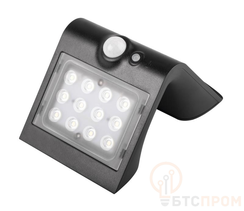 Светодиодный настенный светильник с солнечной батареей. Предназначен для освещения придомовой территории. Светильник оснащен датчиками движения и освещенности. Дистанция срабатывания датчика движения до 6 метров, диапазон обнаружения 120 градусов. 12 светодиодов на лицевой панели (220 Лм) и 2 светодиода на внутренней стороне (для фоновой подсветки) 2 режима работы. Среднее время работы при полностью заряженном аккумуляторе 4-6 ночей (зависит от частоты включения) Материал корпуса: ABS-пластик, Крепеж входит в комплект поставки.