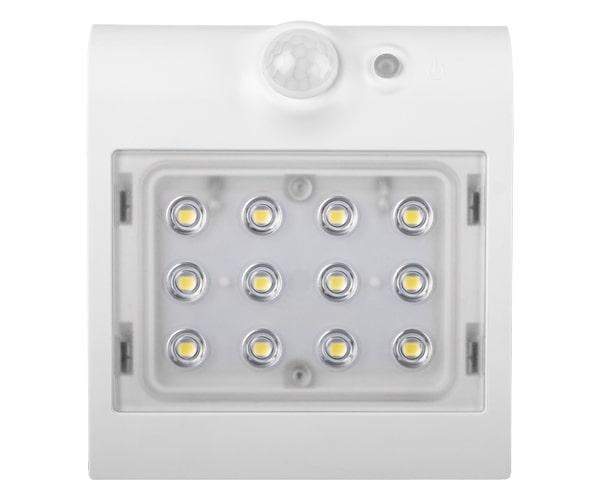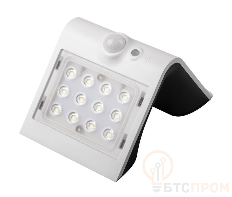 Светодиодный настенный светильник с солнечной батареей. Предназначен для освещения придомовой территории. Светильник оснащен датчиками движения и освещенности. Дистанция срабатывания датчика движения до 6 метров, диапазон обнаружения 120 градусов. 12 светодиодов на лицевой панели (220 Лм) и 2 светодиода на внутренней стороне (для фоновой подсветки) 2 режима работы. Среднее время работы при полностью заряженном аккумуляторе 4-6 ночей (зависит от частоты включения) Материал корпуса: ABS-пластик, Крепеж входит в комплект поставки.