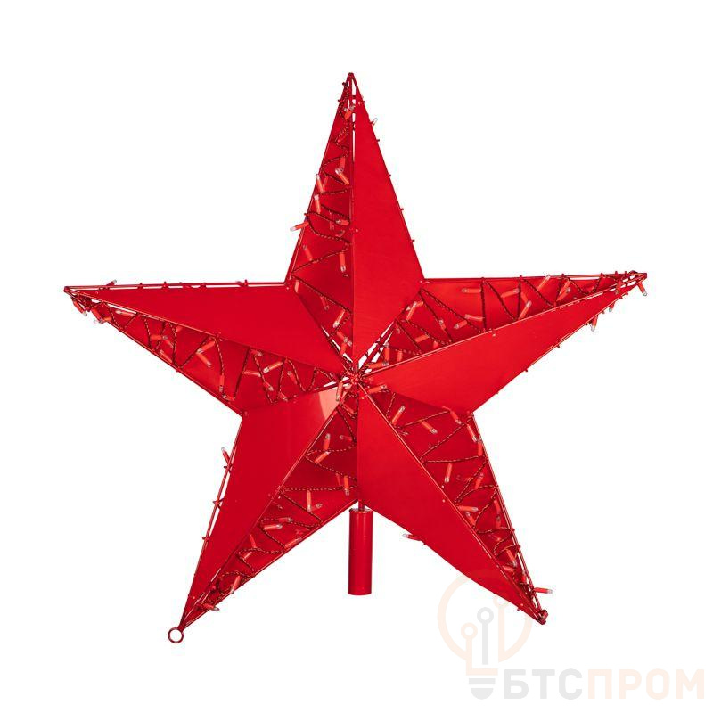 Звезда на елку стала неотъемлемым символом Рождества и Нового года, ведь именно свет звезды ознаменовал рождение Христа и указал волхвам путь к младенцу. Уличная или домашняя елка всегда выглядит наряднее и эффектнее с верхушкой, украшенной яркой звездой. Благодаря съемной трубе и закрепленному на каркасе кольцу для подвешивания, можно с легкостью установить звезду не только на елке, но и на фасаде торгового центра или жилого здания. Прочный каркас из качественного метала и яркое свечение долговечных светодиодов будут радовать несколько сезонов подряд. Размер звезды: 100 см Цвет свечения диодов: красный Питание: от сети 230 В Высота трубы 15см, ? 4см
