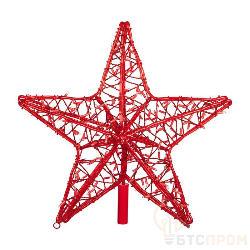 Звезда на елку стала неотъемлемым символом Рождества и Нового года, ведь именно свет звезды ознаменовал рождение Христа и указал волхвам путь к младенцу. Уличная или домашняя елка всегда выглядит наряднее и эффектнее с верхушкой, украшенной яркой звездой. Благодаря съемной трубе и закрепленному на каркасе кольцу для подвешивания, можно с легкостью установить звезду не только на елке, но и на фасаде торгового центра или жилого здания. Прочный каркас из качественного метала и яркое свечение долговечных светодиодов будут радовать несколько сезонов подряд. Размер звезды: 80 см Цвет свечения диодов: красный Питание: от сети 230 В Высота трубы 15см, ? 4см
