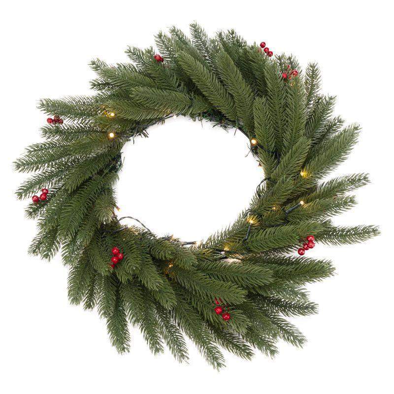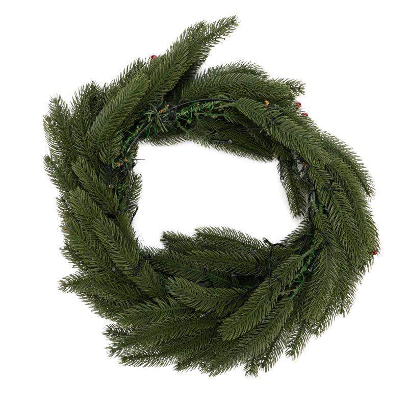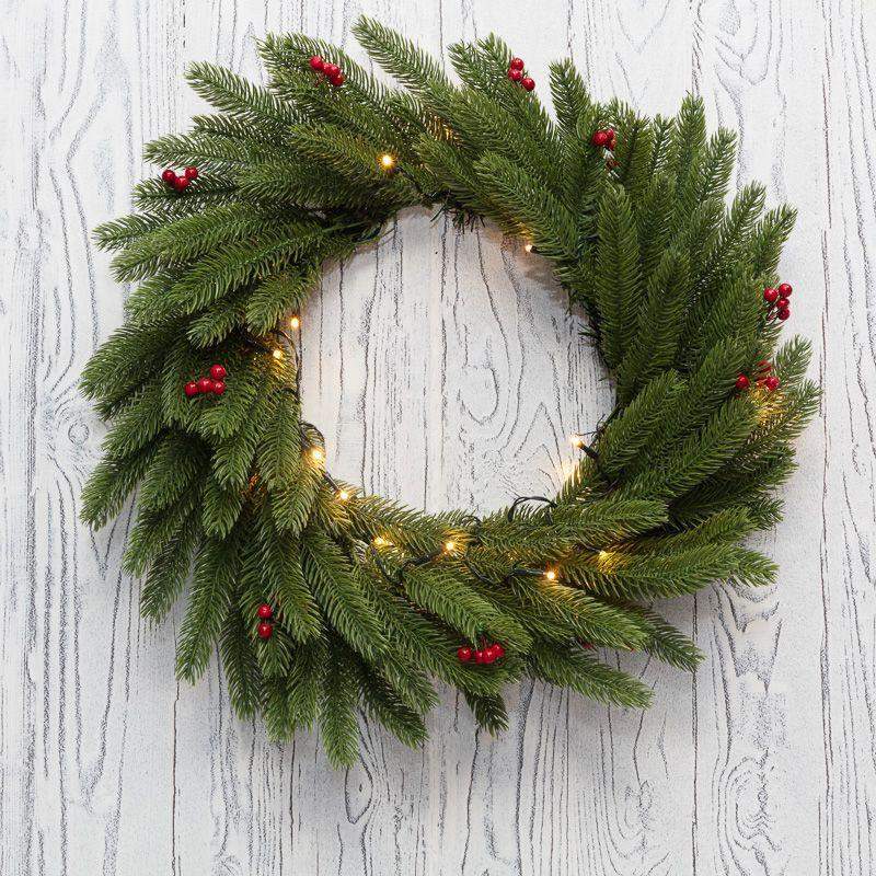Венок еловый с ягодами и гирляндой d45см 20LED тепл. бел. 0.1Вт IP20 литой элементы питания 2хAA Neon-Night 307-150