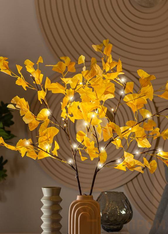 Светодиодная ветвь гинкго (артикул KOC_INT-B130) – это экзотичное и стильное решение для декора. Ветвь длиной 90 см имитирует листву дерева гинкго и оснащена 32 светодиодами теплого белого света. IP44 обеспечивает защиту для уличного использования. Таймер на 6 часов. Коричневый провод длиной 50 см хорошо маскируется на коре деревьев или темных поверхностях. Идеально для тематического декора или добавления восточных ноток в ландшафтный дизайн.