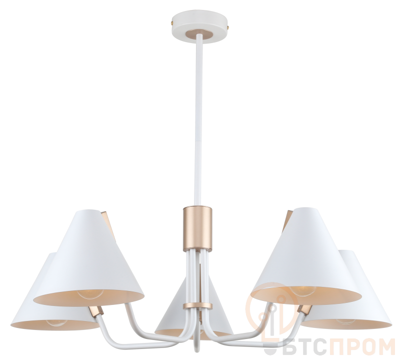 Технические параметры: люстра рассчитана на 5 ламп с цоколем E14 максимальной мощностью 40Вт каждая. Общая потребляемая мощность достигает 200Вт, что позволяет создать яркое основное или зональное освещение. Рекомендуется использовать светодиодные лампы для экономии энергии. Модель предназначена для подключения к стандартной сети 220В.