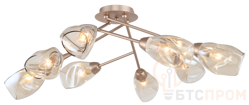 Rivoli Carrie (арт. 3124-308) – люстра потолочная в цвете белое золото, стиль модерн. Количество плафонов – 8. Освещаемая площадь люстры – до 24 м2. Плафоны большой люстры Carrie на потолок изготовлены из стекла, имеют эффектную фигурную форму и слегка затонированы в мягкий тёплый оттенок. Рожки дизайнерской люстры Rivoli Carrie оформлены по мотивам веток дерева или растения с бутонами. Цветочный растительный дизайн – хорошее решение для жилой комнаты. При этом люстры Carrie довольно минималистичны, не утяжеляют интерьер лишним декором. Коллекцию Carrie итальянского бренда Rivoli дополняют потолочные люстры под 6 ламп (арт. 3124-306) и настенные светильники под 2 лампы (арт. 3124-402).