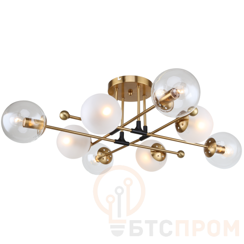 Люстра Rivoli Darlene (арт. 3145-308) – эффектная люстра с 8 круглыми стеклянными плафонами – прозрачными и матовыми. Корпус люстры окрашен в цвет латунь и представляет собой оригинальную композицию из перекрёстных металлических реек. Люстра на штанге из металла – выгодная и долговечная покупка. Сочетание стеклянных и матовых плафонов имеет не только декоративную, но и практическую функцию: через прозрачное стекло проходит свет максимальной яркости, через матовое – мягкий и рассеянный. Этот баланс создаёт комфортное для глаз освещение. В коллекции Darlene от итальянских дизайнеров бренда Rivoli к заказу доступны также потолочные люстры под 6 ламп (арт. 3145-306) и настенный светильник под 2 лампы (арт. 3145-402).