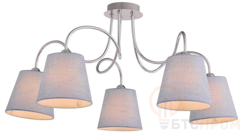 Технические характеристики: общая мощность — до 200 Вт (5 патронов E14 по 40 Вт максимум каждый), напряжение питания 220 В. Рекомендуется использовать светодиодные или энергосберегающие лампы для снижения нагрузки и энергопотребления. Люстра предназначена для установки на потолок с обязательным предварительным монтажом крюка или монтажной пластины. Габаритные размеры: высота 450 мм, диаметр 650 мм.
