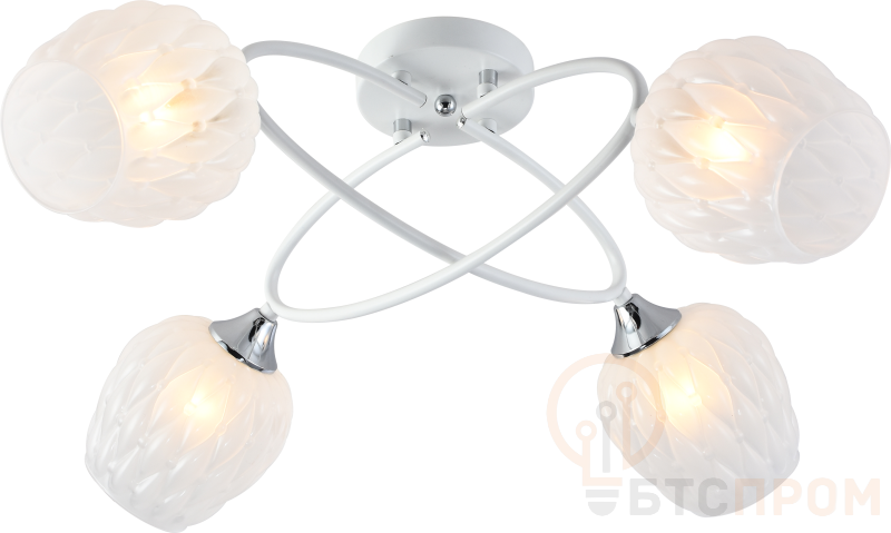 Rivoli Hettie (арт. 3136-304) - люстры итальянского дизайна, отличающиеся оригинальной металлической арматурой и фигурными плафонами из белого матового стекла. Овальные перекрестные держатели плафонов окрашены в базовый белый цвет, универсальный для любых интерьеров. Люстры потолочные Hettie Rivoli выполнены в стиле модерн. Стеклянные плафоны в классической форме бутонов имеют объемный рисунок с ромбами. Люстры Hettie освещают 12 м2. Эти стильные светлые люстры с 4 белыми матовыми плафонами хороши для кухни, коридора, прихожей, небольшой спальни или детской комнаты. Дизайнерские люстры на кухню Rivoli Hettie устойчивы к выцветанию и образованию царапин, сколов благодаря гальваническому покрытию корпуса. Четыре плафона с закаленным стеклом также обеспечивают долгий срок службы люстры. Коллекцию Hettie европейского бренда Rivoli дополняют люстры потолочные под 6 ламп - арт. 3136-306. Рекомендуемые источники света для современной люстры коллекции Hettie - Е27 60 Вт.