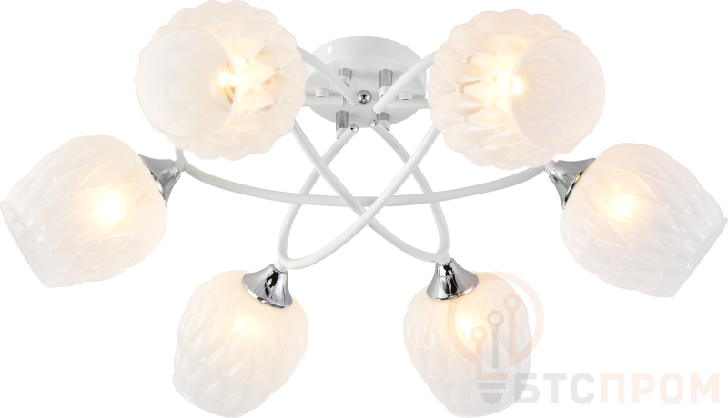 Rivoli Hettie (арт. 3136-306) - люстры потолочные белого цвета с дизайнерскими матовыми плафонами. Люстры Hettie с 6 плафонами из стекла с объемным рисунком освещают площадь 18 м2. В коллекции Hettie итальянского бренда Rivoli есть аналогичная люстра на потолок с 4 стеклянными плафонами - арт. 3136-304. Выдувные матовые плафоны люстры Hettie Rivoli повторяют форму бутона розы. Узор на стеклянных плафонах объемный, с выпуклыми ромбами. Дизайн люстры Hettie выполнен в стиле модерн, который стремительно набирает популярность. Люстры потолочные Rivoli Hettie имеют оптимальную для жилой комнаты площадь освещения. Если ваша цель - поиск люстры в гостиную, люстры в спальню или люстры на кухню - посмотрите фото современной люстры Hettie и спешите оформить заказ. Вы получите стильную люстру на невысокий потолок или на потолок средней высоты. Отлично осветите квартиру, дом или студию мягким светом без бликов. Для люстры Hettie c оригинальной овально-перекрестной арматурой нужно купить лампы Е27 60 Вт.