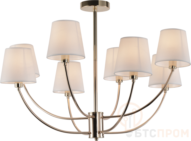Люстра Juliette 2094-308 от бренда Rivoli — классическая восьмирожковая модель для создания торжественного освещения в просторных интерьерах. Каркас изделия выполнен из металла с покрытием под золото и декорирован хрустальными подвесками и прозрачными вставками, что обеспечивает эффектное рассеивание света.