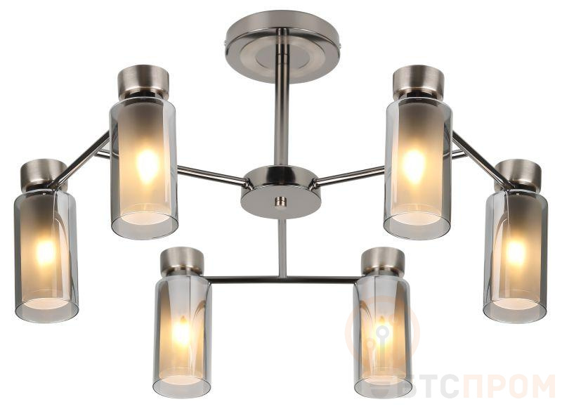 Технические характеристики: 6 патронов стандарта E14, максимальная суммарная мощность до 360 Вт (6 х 60 Вт). Рекомендуется использовать светодиодные или энергосберегающие лампы для повышения эффективности. Люстра идеально подходит для освещения гостиных, столовых, холлов и офисных помещений площадью от 15 до 25 квадратных метров. Монтаж осуществляется на стандартный потолочный крюк, комплектация включает все необходимые крепежные элементы.