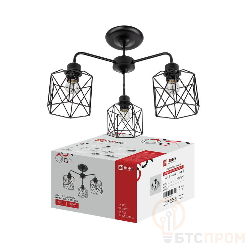 Люстра LOFT ATIKO-CN-3E27R-BL в стиле лофт станет стильным акцентом в современном интерьере. Каркас светильника выполнен из металла в матовом черном цвете, что придает ему индустриальный и одновременно лаконичный вид. Конструкция предусматривает три плафона-рефлектора, направленных в разные стороны, что позволяет эффективно осветить пространство.