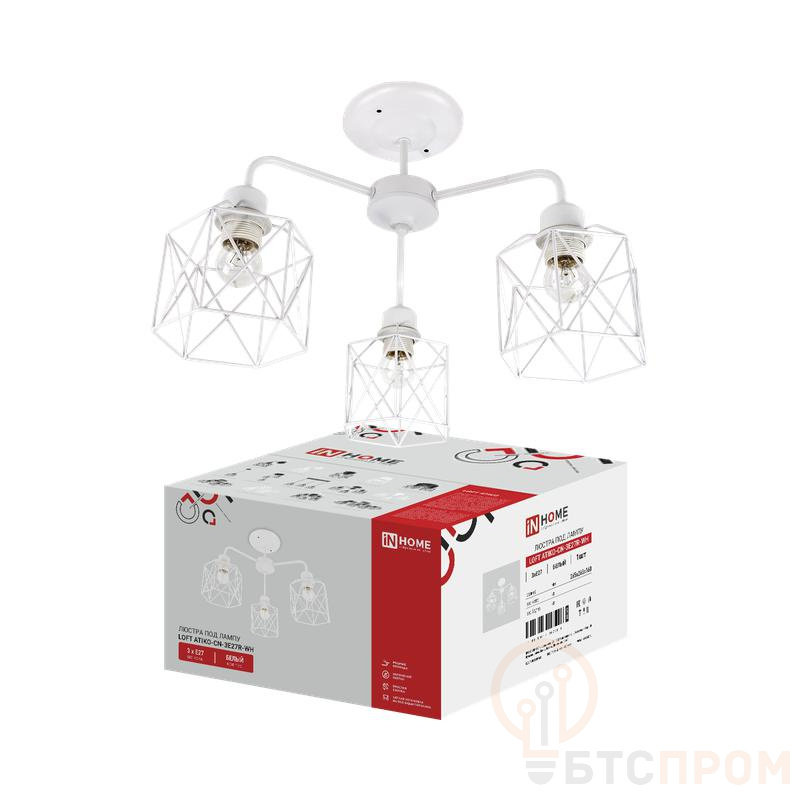 - Тип цоколя: 3 х E27 (максимальная мощность лампы 60 Вт каждая).