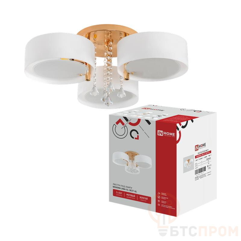 Люстра MODERN LIMA-CL-3E27-GL от бренда IN HOME — это стильный осветительный прибор, сочетающий в себе современный дизайн и функциональность. Модель выполнена в актуальной двухцветной гамме: белые матовые плафоны конусообразной формы эффектно контрастируют с золотистым основанием и подвесами, что создает атмосферу уюта и роскоши.