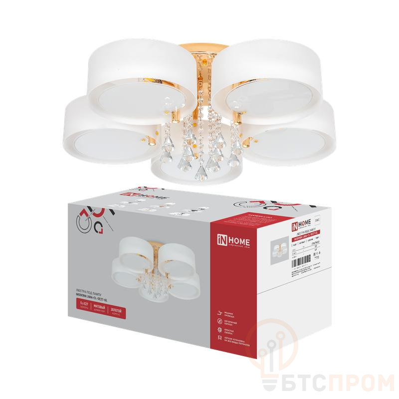Люстра MODERN LIMA-CL-5E27-GL — это стильный осветительный прибор, который сочетает в себе современный дизайн и функциональность. Модель выполнена в актуальной комбинации матового белого плафона и элементов из золотистого металла, что создает эффект теплого и уютного освещения.