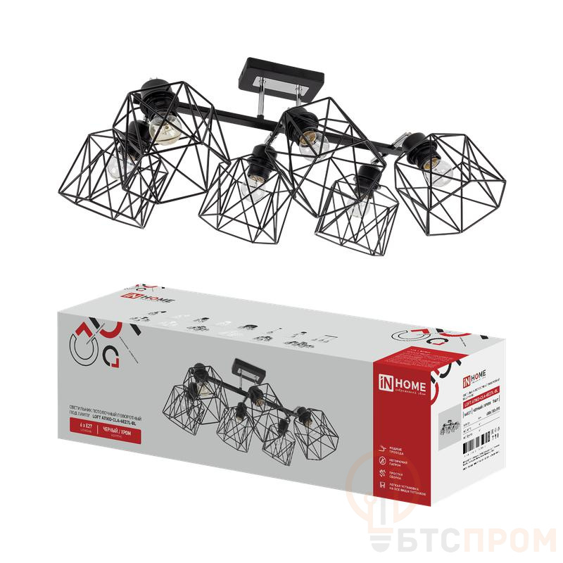 Люстра поворотная LOFT ATIKO-СLА-6E27L-BL в стиле лофт станет стильным акцентом в современном интерьере. Модель выполнена в строгом черном цвете с матовым хромированным покрытием, что обеспечивает ее универсальность и долговечность.