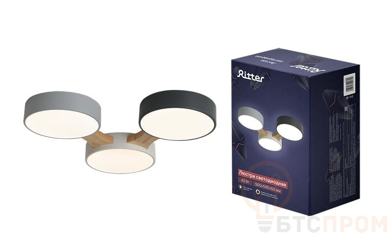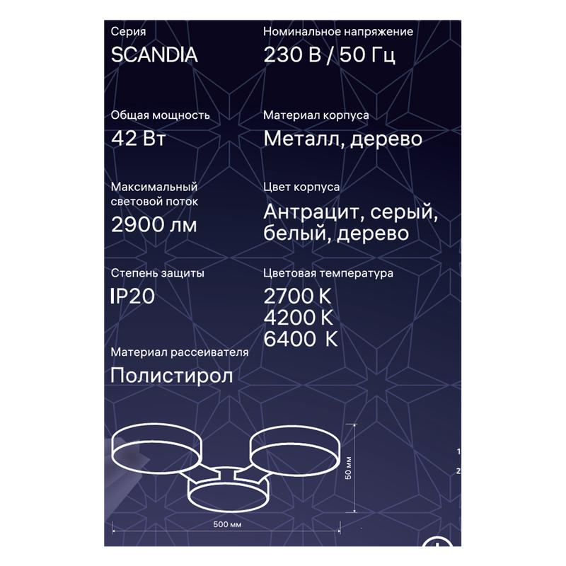 Люстра светодиодная Ritter 52070 2 SCANDIA мощностью 42Вт и размером 500x500x50 мм. Три режима. Освещает площадь до 15 кв.м. Корпус антрацит/серый/белый/дерево.