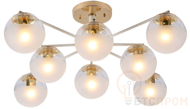 Umbra Rivoli (арт. 3129-308) - современная люстра в стиле модерн, люстра в гостиную в бело-золотой гамме. Количество плафонов - 8 (люстры с 8 плафонами / люстры под 8 ламп). Круглые компактные плафоны поделены на 2 части - прозрачный верх и матовый низ. Матовое стекло люстры отлично рассеивает свет и устраняет блики, прозрачное обеспечивает отличную подсветку потолка, делая комнату визуально просторнее и светлее. Находиться в комнате, где установлены люстры потолочные Umbra от европейского бренда Rivoli, приятно комфортно. Света этой люстры хватает для качественного освещения площади до 24 м2. Люстры Umbra Rivoli прекрасное решение на потолок современной квартиры. Если вы ищете люстры в спальню, люстры на кухню, спешите купить Rivoli Umbra. Корпус люстры изготовлен из металла со стойким гальваническим окрашиванием. В коллекции Umbra Rivoli представлены также люстры потолочные под 12 ламп (арт. 3129-312), современные люстры под 6 ламп (арт. 3129-306).