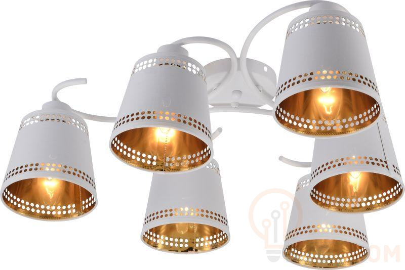 Потолочная люстра Rivoli Yvonne (арт. 9166-306) металлическая, со стойким порошковым окрашиванием белого цвета. Шесть цилиндрических плафонов имеют декоративную перфорацию и окрашены со внутренней части в золотой цвет. В коллекции Yvonne, созданной итальянским брендом Rivoli, есть также люстра с 4 плафонами, её фото в карточке товара по артикулу 9166-304. Удачное решение заказать люстру Yvonne в гостиную или в спальню. Элегантный игривый дизайн этой люстры оживляет пространство, в то же время базовый белый цвет помогает этой люстре подружиться с интерьером любого стиля скандинавский, модерн, кантри, современная классика и даже восточный.