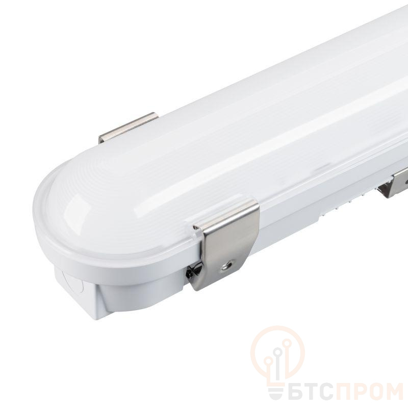 Корпус устройства изготовлен из ударопрочного пластика и имеет высокую степень защиты IP66, что гарантирует полную защиту от пыли и мощных струй воды. Это делает светильник идеальным для эксплуатации под открытым небом, в производственных цехах, на складах, в автомойках, а также на других промышленных и коммерческих объектах. Напряжение питания 230В позволяет легко интегрировать его в стандартные электрические сети.