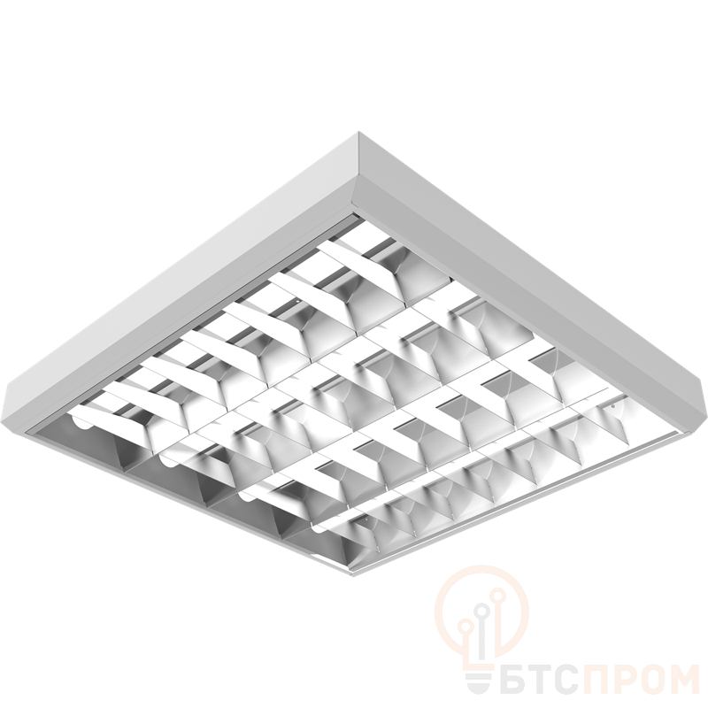 Накладной светильник для учебных и офисных помещений. V-образная отражающая решетка из алюминия марки Alanod обеспечивает высокий КПД светильника. Крепление на поверхность потолка. Для установки светильника необходимо заказать Комплект крепления х 4 (код заказа – 2995000040). Цельнометаллический сварной корпус из листовой стали, покрытый белой порошковой краской. В корпусе установлена пускорегулирующая аппаратура.