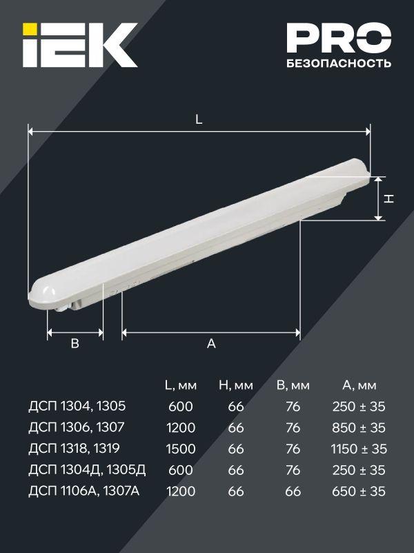 Светильник светодиодный ДСП 1305 18Вт 6500К IP65 600мм пластик сер. IEK LDSP0-1305-18-6500-K01 фото в каталоге от BTSprom.by