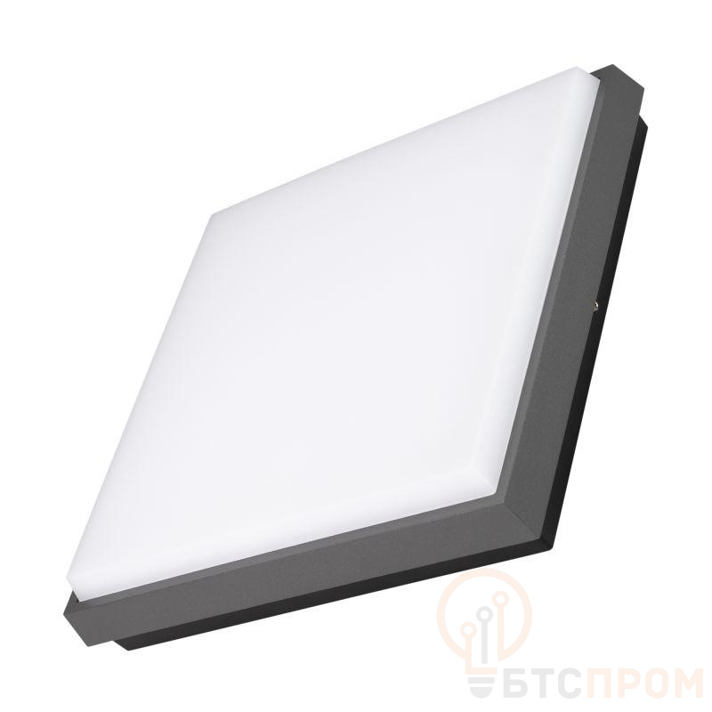 Накладной светильник 25Вт, серый алюминиевый корпус, матовый рассеиватель из поликарбоната. Цвет ТЕПЛЫЙ БЕЛЫЙ 3000K, св.поток 2540лм, CRI(Ra)>80, угол 110°. Размер 240x240x45мм. IP54. Питание AC220-240V, 26Вт, встроенный драйвер.