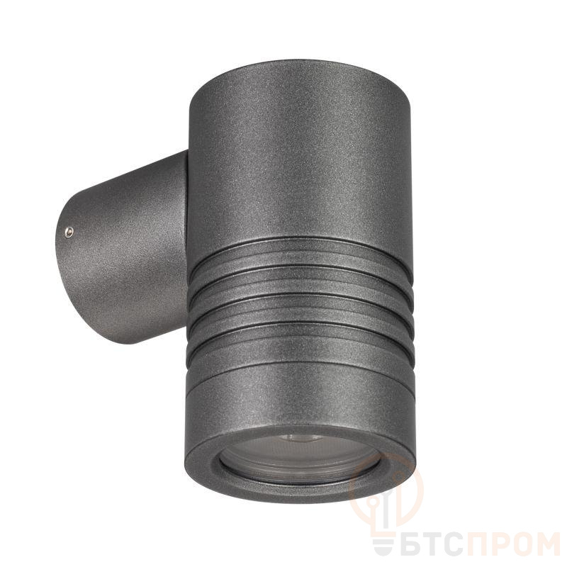 Накладной настенный светильник. Мощность 3,5 Вт, св. поток 310 лм, 88 лм/Вт, дневной 4000 K, CRI>80, угол 24°, напряжение питания 230 В. Темно-серый фигурный корпус из алюминия, экран стекло, степень защиты IP65. Размер: длина 78 мм, ширина 46 мм, высота 76 мм. Монтаж накладной. Драйвер встроенный, пульсация <1%.
