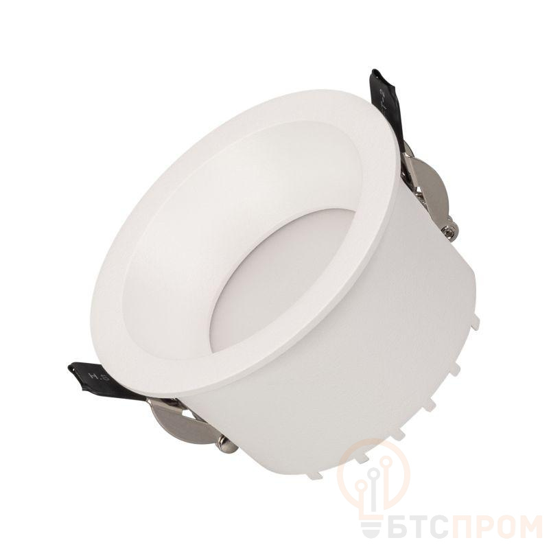 Встраиваемый светильник даунлайт. Мощность 8 Вт, св. поток 610 лм, 76 лм/Вт, тёплый 2700 K, CRI>90, угол 85°, напряжение питания 230 В. Белый круглый корпус из алюминия, степень защиты IP54. Размер: диаметр 84 мм, высота 49 мм. Монтаж встраиваемый, установочное отверстие: диаметр 75 мм. Драйвер 30-45 В, 200 мА, пульсация <3%.