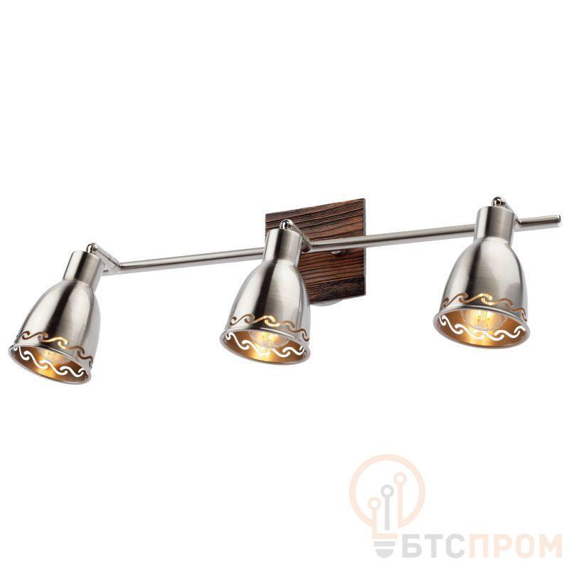 Светильник спот Acerno 7014-703 от Rivoli — это настенно-потолочный поворотный прибор для акцентного и общего освещения. Корпус из металла с покрытием под бронзу обеспечивает долговечность и стильный внешний вид. Конструкция включает три поворотных плафона на шарнирах, каждый с патроном E14, что позволяет направлять световой поток под нужным углом, создавая гибкую световую сцену.