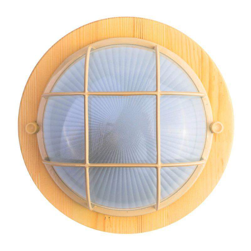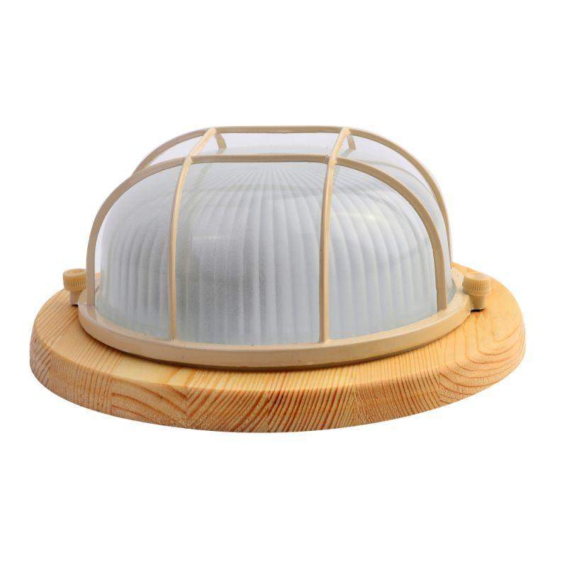 Светильники серии НБО 03 и НБО 04 предназначены для общего освещения подсобных,промышленных, производственных помещений, а так же для помещений с повышенной влажностью (бани, сауны, бассейны и т.д.) Влагозащищенный светильник Camelion 1301D Цвет КЛЁН, круг, "Решетка", размер 220х220х92мм, источник света - ЛОН, тип лампы - 60/А/Е27, патрон - E27, мощность 60Вт, 230 В, 50 Гц. IP54 Класс защиты 1.