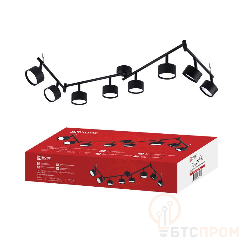 Светильник НПБ СПОТ-8ШРxGX53-BL — это современный потолочный светильник на регулируемой штанге, предназначенный для точечного освещения. Модель оснащена восемью поворотными плафонами под лампы типа GX53, что позволяет гибко направлять световые потоки и создавать акцентную подсветку.