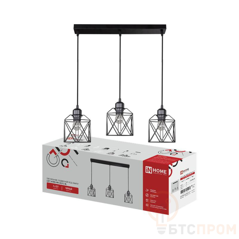 Светильник подвесной LOFT ATIKO-PN-3E27L-BL 3хE27 подвес 1м под лампу линейная база черн. IN HOME 4690612067384