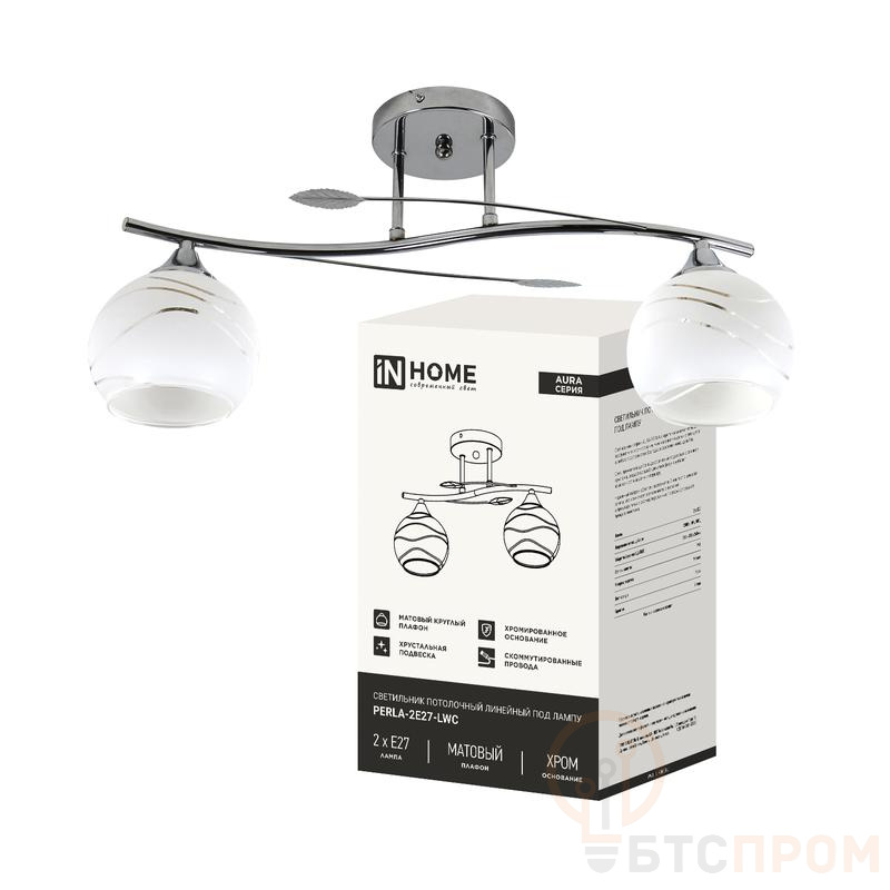 Светильник AURA PERLA-2Е27-LWC 2хE27 потолочн. линейный под лампу плафон матов.; хром IN HOME 4690612064536