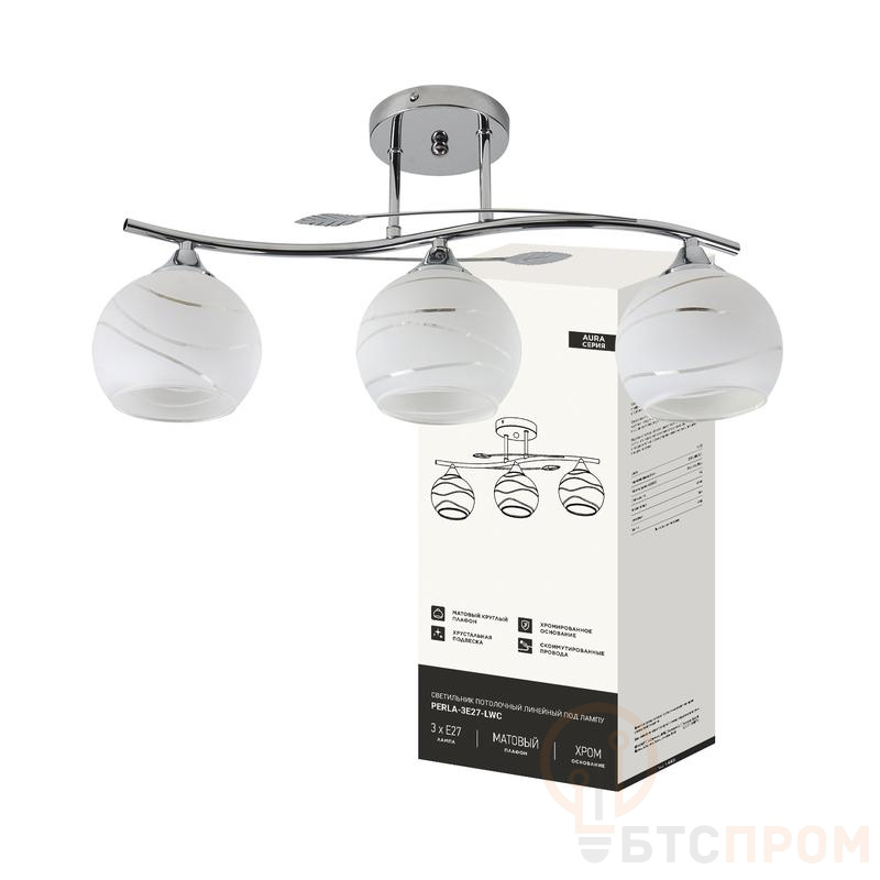 Светильник AURA PERLA-3Е27-LWC 3хE27 потолочн. линейный под лампу плафон матов.; хром IN HOME 4690612064543