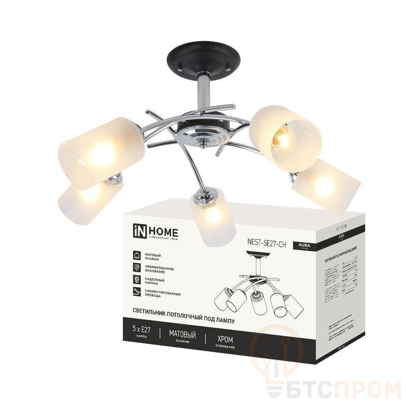 Светильник AURA NEST-5Е27-CH 5хE27 потолочн. под лампу плафон матов./корпус хромированный IN HOME 4690612065137