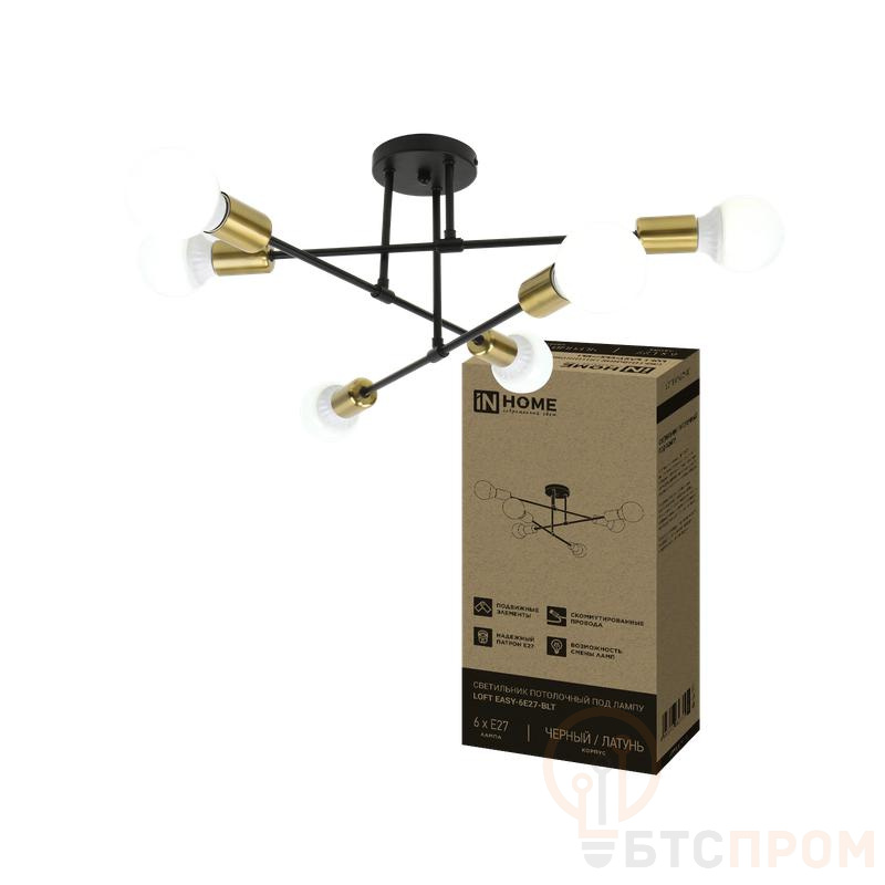 Потолочный светильник LOFT EASY-6E27-BLT от IN HOME — это стильное и функциональное решение для современного интерьера. Модель выполнена в индустриальном лофт-стиле, сочетая матовую черную отделку с эффектными декоративными элементами под латунь. Прочный металлический корпус гарантирует долговечность эксплуатации.