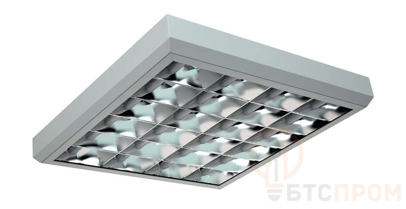 Накладной светильник для офисных и учебных помещений с улучшенной параболической отражающей решеткой из алюминия Alanod, обеспечивающей оптимальное светораспределение и высокий КПД. Крепление на поверхность потолка. Цельнометаллический сварной корпус из листовой стали, покрытый порошковой краской белого цвета. В корпусе установлена пускорегулирующая аппаратура.