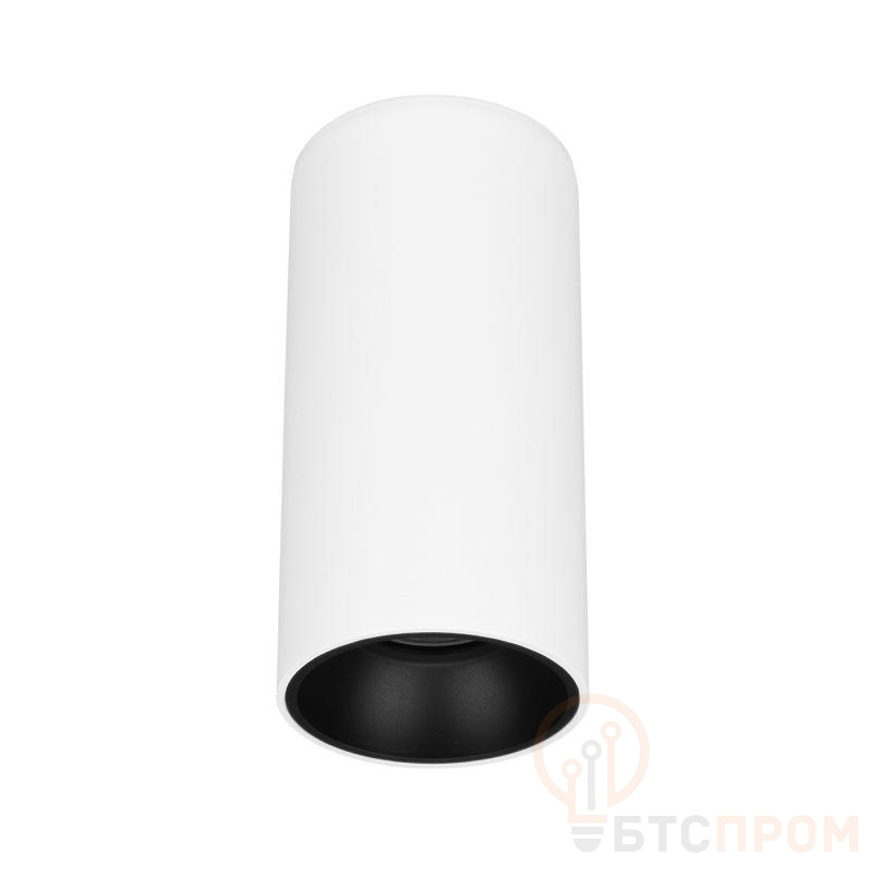 Накладной интерьерный светильник. Мощность 15 Вт, св. поток 1200 лм, 80 лм/Вт, теплый 3000 K, CRI>90, угол 40°, напряжение питания 230 В. Белый круглый корпус с черной вставкой из алюминия, степень защиты IP54. Размер: диаметр 75 мм, высота 152 мм. Монтаж накладной. Драйвер 22-40 В, 350 мА, пульсация <1%.