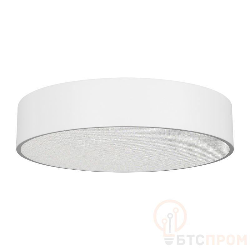 Накладной интерьерный светильник. Мощность 35 Вт, св. поток 2840 лм, 80 лм/Вт, теплый 3000 K, CRI>80, угол 100°, напряжение питания 230 В. Белый круглый корпус из алюминия, степень защиты IP20. Призматический акриловый рассеиватель. Размер: диаметр 500 мм, высота 100 мм. Монтаж накладной. Драйвер 30-42 В, 950 мА, пульсация <2%.