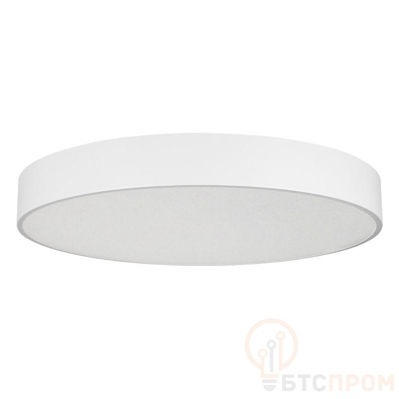 Накладной интерьерный светильник. Мощность 94 Вт, св. поток 7620 лм, 80 лм/Вт, дневной 4000 K, CRI>80, угол 100°, напряжение питания 230 В. Белый круглый корпус из алюминия, степень защиты IP20. Призматический акриловый рассеиватель. Размер: диаметр 800 мм, высота 100 мм. Монтаж накладной. Драйвер 28-42 В, 1200 мА (2 шт.), пульсация <2%.