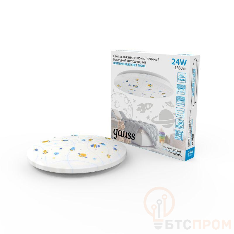 Светильник светодиодный 380х63 24Вт 4000К IP20 1560Лм круг (космос) настенно-потолочный накладной GAUSS 941411224R