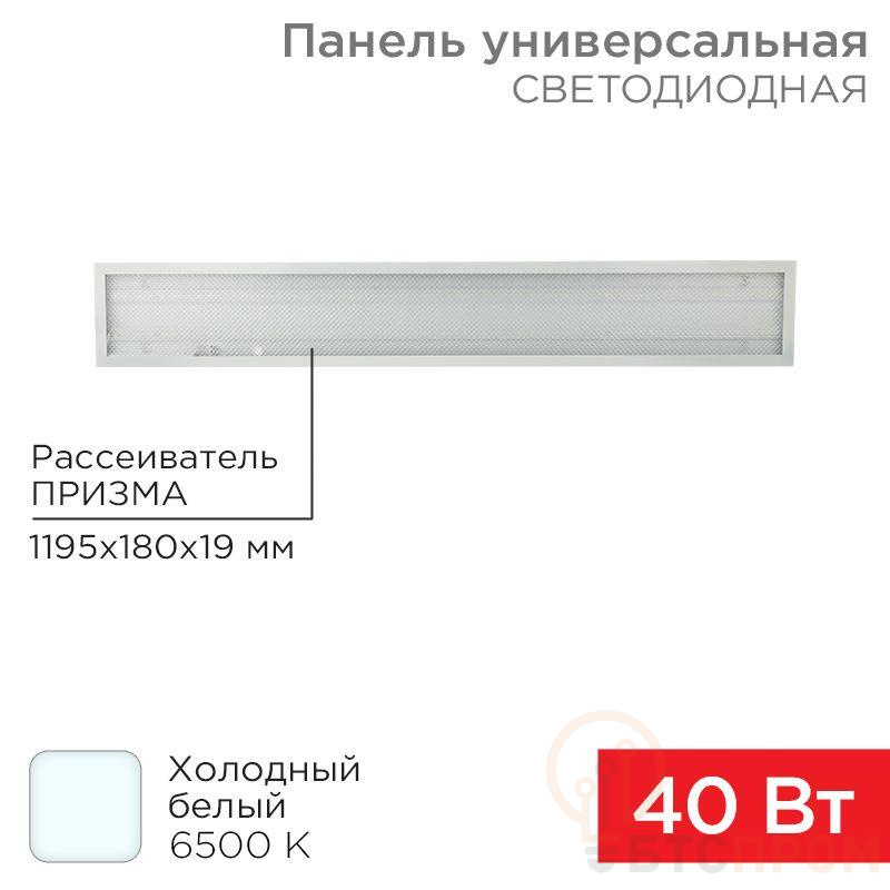 Светильник светодиодный 40Вт 6500К холод. бел. IP20 3300лм 180-260В 19х1200х180 универс. призма панель Rexant 606-014