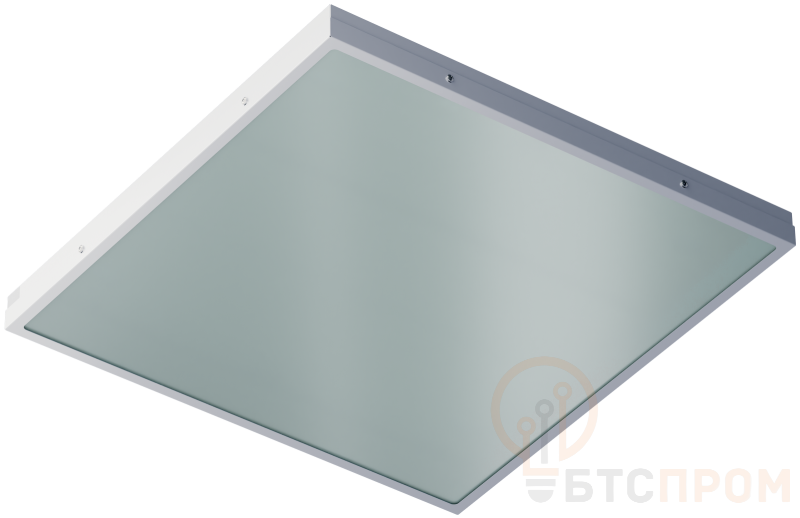 Конструкция. Цельнометаллический сварной корпус выполнен из листовой стали, покрыт белой порошковой краской. По периметру рамки рассеивателя закреплен силиконовый уплотнитель, обеспечивающий степень защиты IP54. Имеет удобную нажимную клеммную колодку для подключения. Установка. Монтируется в подвесные потолки Армстронг или другие потолки с установочным размером 595х595 мм, а также крепится на подвесах (в комплект не входят) к потолку или на опорную поверхность. Оптическая часть. Рассеиватели изготовлены из светотехнического полистирола и закаленного матированного стекла, обеспечивают равномерный мягкий свет. Источник света. Используются светодиоды HONGLI 2835 повышенной эффективности. Области использования. Медицинские учреждения, промышленные предприятия, чистые помещения. Светильники с рассеивателем из закаленного стекла подходят для помещений с категорией пожароопасных зон П-IIa. Дополнительная информация. Доступны модели: с блоком аварийного питания, с драйвером, управляемым по протоколу DALI 2.0, с датчиком движения, с CRI90_x000D_ возможна установка защитной решетки
