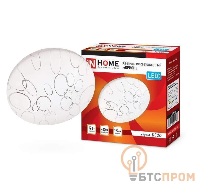 Светодиодный светильник круглой формы ОРИОН серии DECO от ТМ In Home в классическом белом корпусе с нейтральным абстрактным рисунком удачно впишется в любой современный интерьер. Линейка светильников ОРИОН представлена в трех размерах от 190 до 350 мм. Несколько вариаций мощности (в диапазоне от 12 Вт до 36 Вт) позволяют подобрать оптимальный осветительный прибор, в зависимости от конфигурации и габаритов помещения. Применение Светодиодные светильники ОРИОН серии DECO предназначены для внутреннего освещения жилых помещений, подъездов и сферы ЖКХ, офисных и административных учреждений, магазинов, а также холлов, коридоров, лестничных пролётов, подсобок и других помещений вспомогательного назначения. Преимущества Современные светильники серии DECO, работающие на основе последнего поколения светодиодов, обеспечивают яркий равномерный световой поток при максимальной экономии электроэнергии. Отсутствие пульсации гарантирует сохранность здоровья глаз. Светодиодные светильники являются одним из самых экологически безвредных источников света и не требуют специальной утилизации и переработки. Светильники получили сертификат таможенного союза EAC. Производятся по ГОСТу Р МЭК 60598-1-2011. Монтаж Светодиодные светильники серии DECO применяются для работы в сетях переменного тока напряжением 230В ± 10% с частотой 50 герц. Перед установкой следует убедиться в правильности напряжения питающей сети и наличии защитного устройства в цепи (автоматический выключатель, предохранитель). Этапы установки: отключите сетевое напряжение, извлеките светильник из упаковки, открутите плафон светильника, повернув его по часовой стрелке. Через клеммную колодку подключите подготовленные концы проводов осветительного прибора к проводу сети. Установите светильник на поверхности и зафиксируйте при помощи дюбелей и саморезов. Сборку светильника следует осуществлять в обратной последовательности.