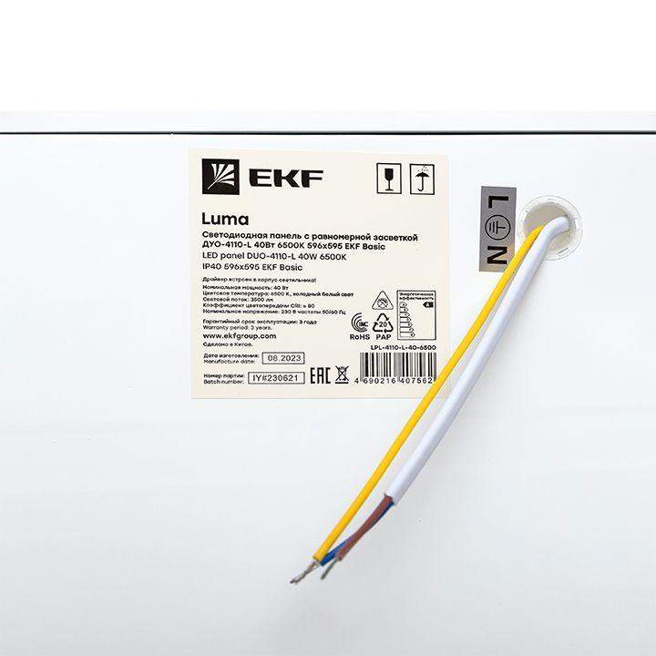 Светильник светодиодный ДУО-4110-L 40Вт 6500К 595х595 25мм ДВО опал с равномерной засветкой панель Basic EKF LPL-4110-L-40-6500