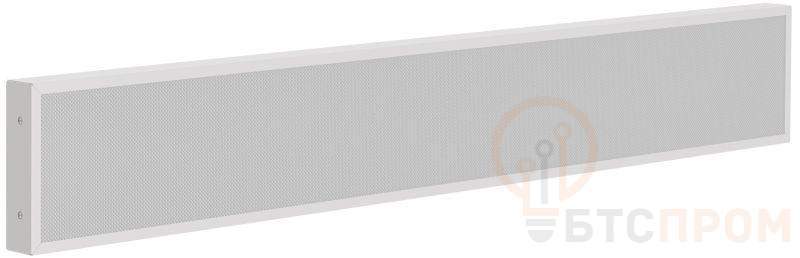 Корпус светильника выполнен в виде панели размером 1195x180 мм с матовым рассеивателем типа "призма", который эффективно устраняет блики и дискомфорт для глаз. Степень защиты IP40 указывает на то, что устройство предназначено для использования внутри сухих и чистых помещений, защищено от попадания твердых частиц размером более 1 мм.