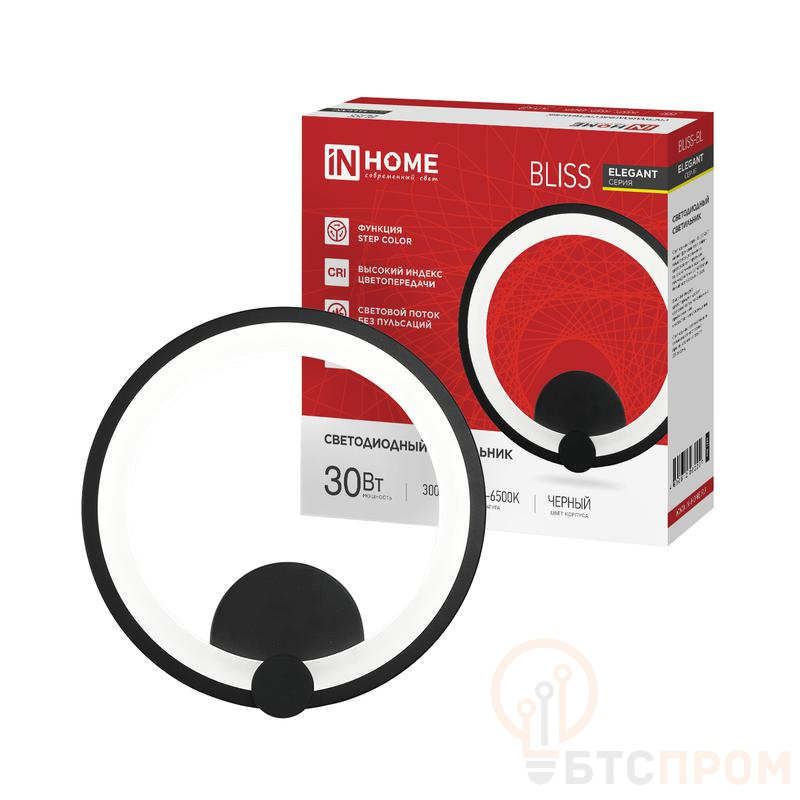 Светильник светодиодный ELEGANT BLISS-BL 30Вт 3000-6500К 2400лм 230В STEP COLOR черн. IN HOME 4690612062297